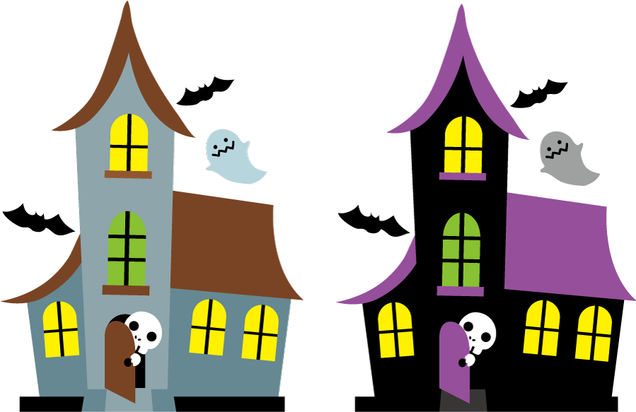 お化け屋敷イラストなら 小学校 幼稚園向け 保育園向けのかわいい無料イラストお試しフリー素材 カット がいっぱいの安心サイトへどうぞ