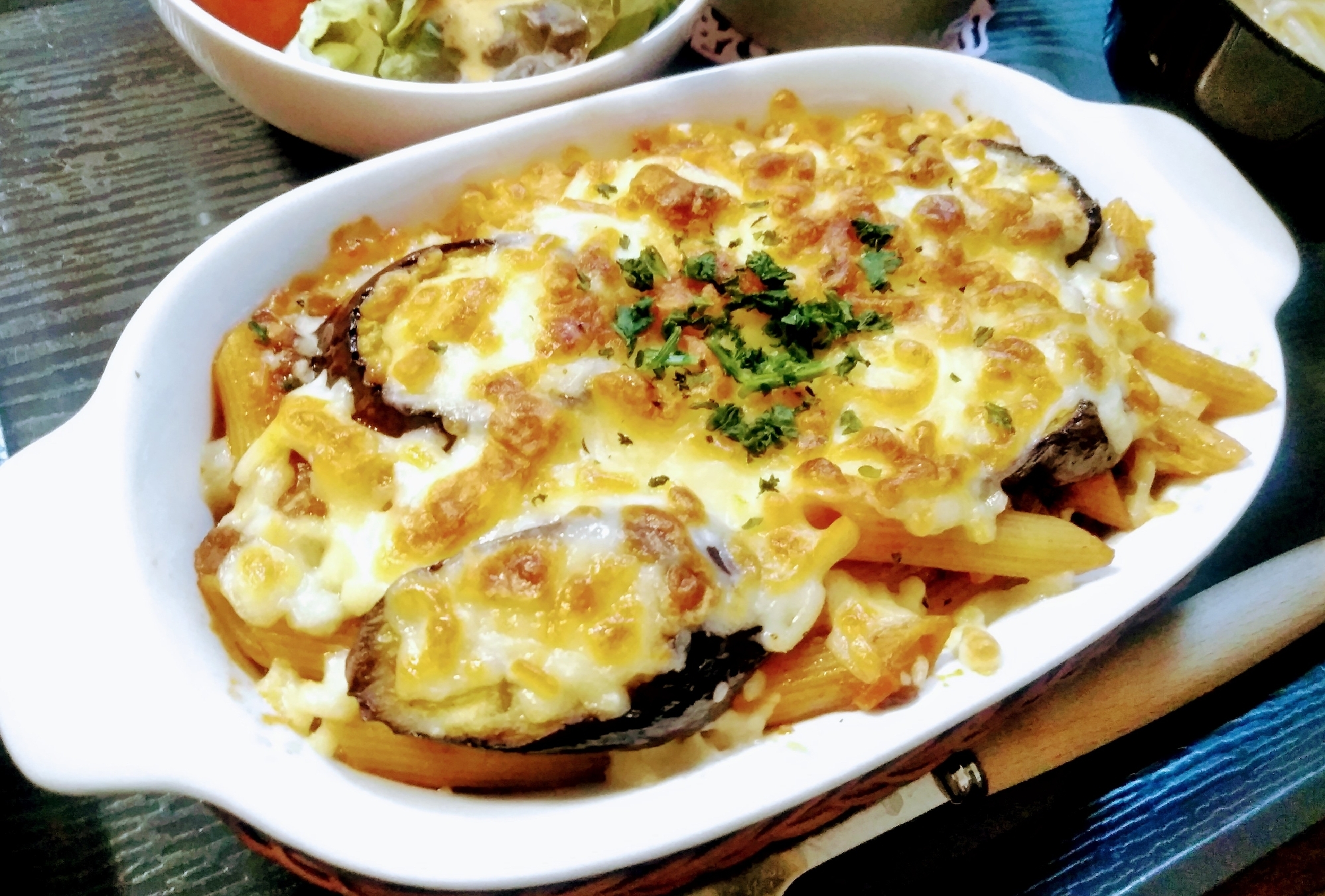 熱々献立がやっと決まった 茄子のミートグラタン 水は方円の器に随う